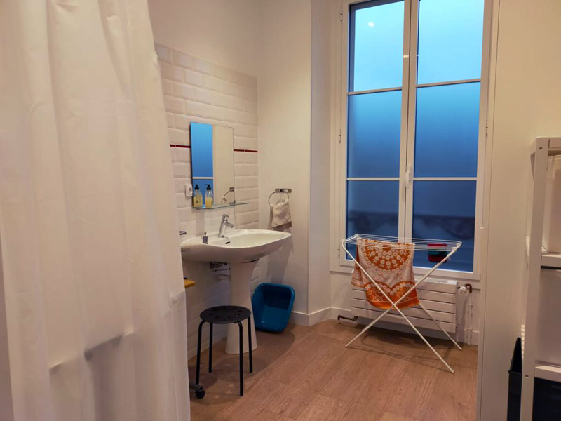 Chaque habitant.e a sa chambre, équipée avec ses propres meubles. Il n’y a pas de salle de bain privative mais trois grandes salles de bain au rez-de-chaussée et à l’étage.