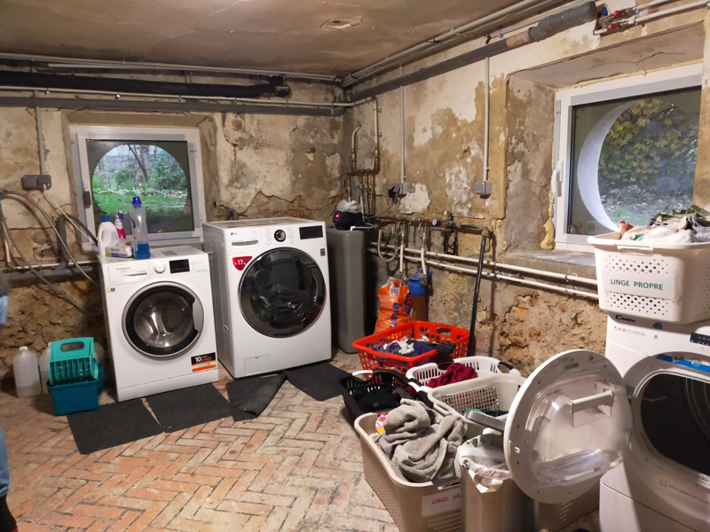 Les parties communes sont constituées d’un hall d’entrée spacieux, d’une grande cuisine équipée avec coin pour le petit déjeuner, d’un salon commun et d’une salle à manger avec grande table, d’un bureau pour l’équipe, d’une buanderie, et de trois grandes salles de bain.